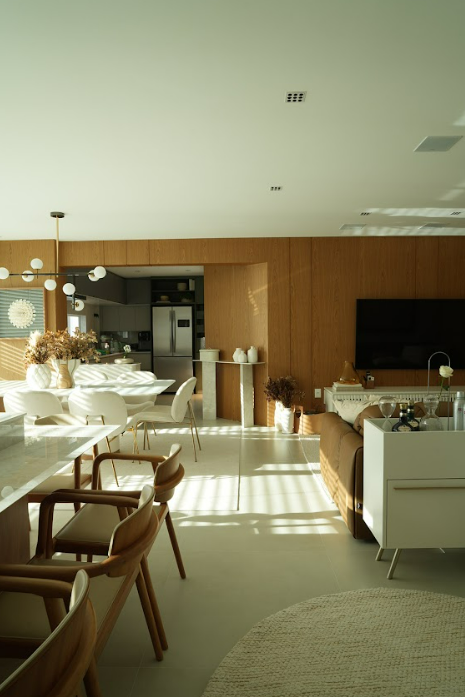 Para isso, o layout privilegia integração e circulação fluida, criando um ambiente convidativo tanto para momentos de descanso quanto para reuniões informais entre familiares e convidados.