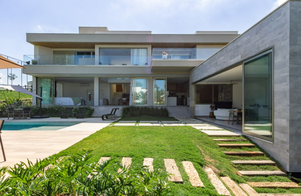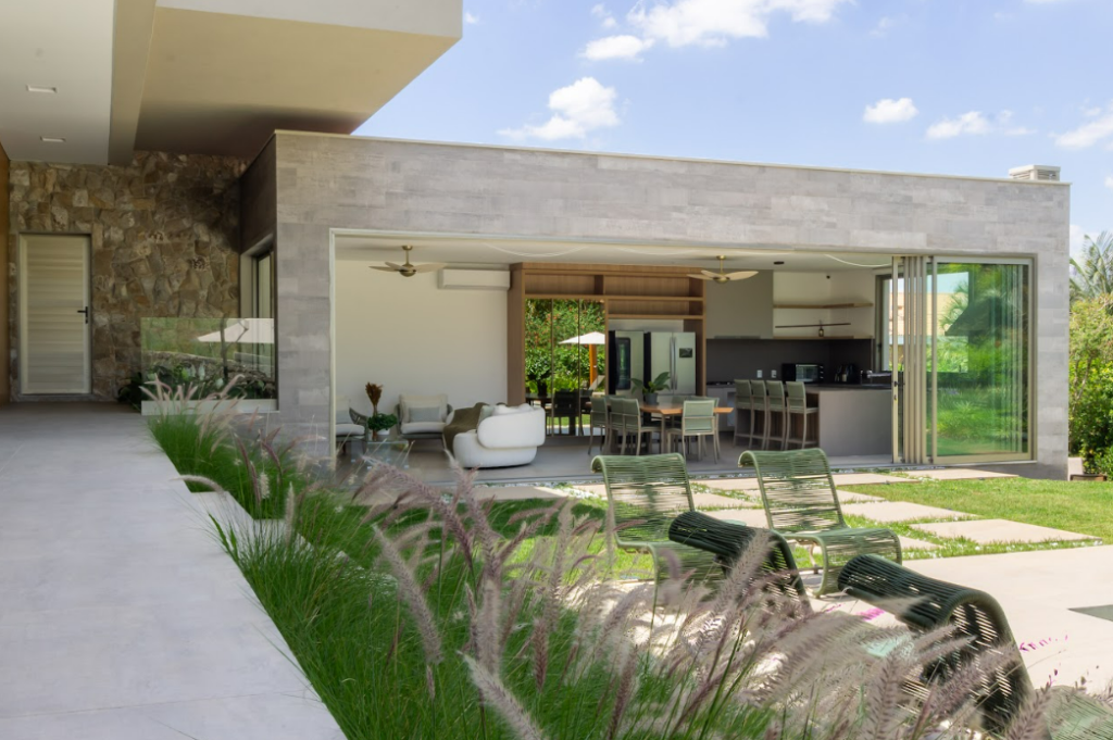 O paisagismo se complementa às áreas internas da residência
