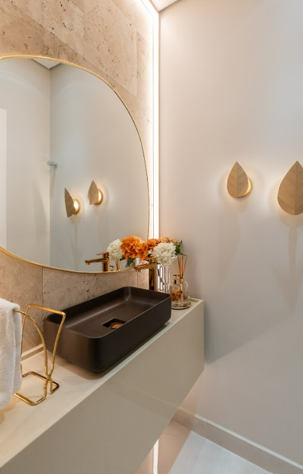 O lavabo ganhou uma iluminação especial e muito aconchegante