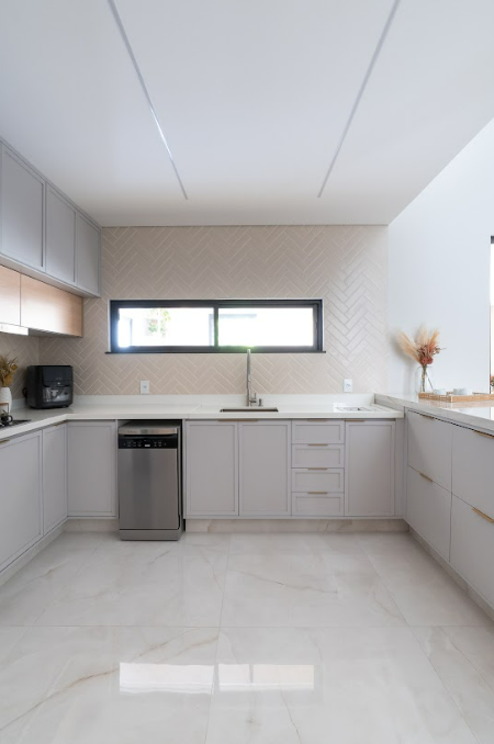Na cozinha, a marcenaria planejada garantiu mais funcionalidade no dia a dia