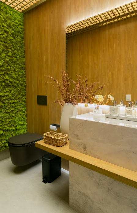 O lavabo ganhou identidade com soluções criativas e personalizadas