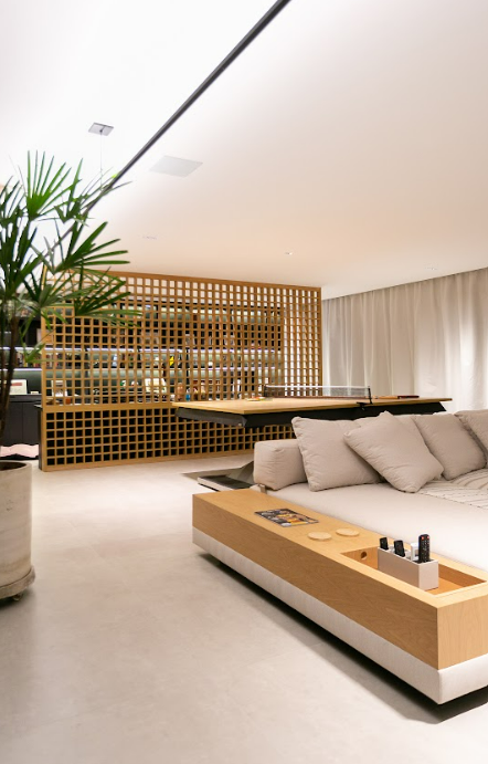 Linhas contemporâneas e tons neutros que reforçam a sensação de equilíbrio e acolhimento