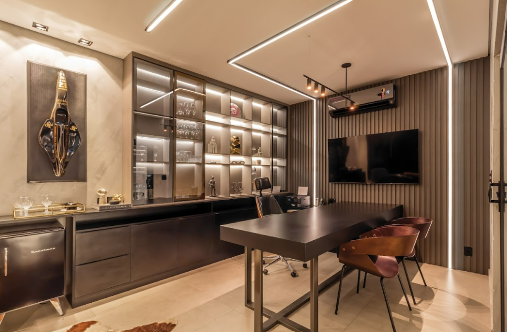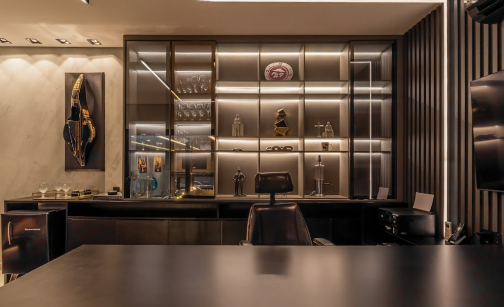 O cliente, um empresário de alta performance, desejava um espaço que fosse mais do que funcional, que transmitisse credibilidade, sofisticação e uma experiência à altura do produto que comercializa.