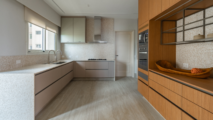 Este é o segundo projeto assinado por Torelli para os mesmos moradores, agora em um momento bem diferente da vida. Se o primeiro apartamento refletia uma fase sem filhos, o novo lar precisou acompanhar a rotina de um casal jovem, com dois filhos pequenos.