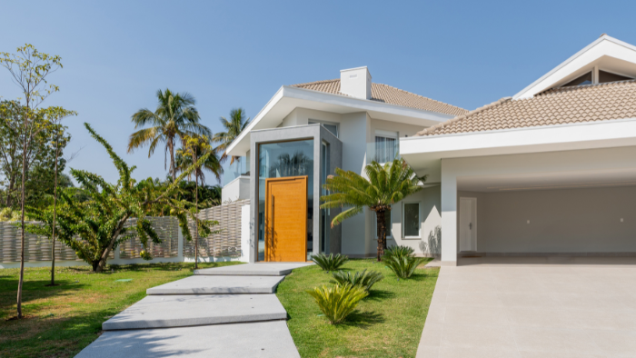 O paisagismo assinado pela Salvatore complementa o projeto, integrando os espaços externos de forma harmoniosa e elegante.