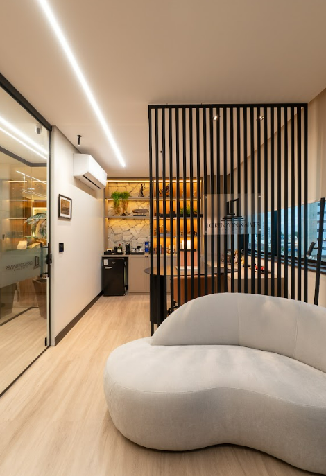 Assinado pelo escritório Caputti Arquitetura, o projeto do Escritório de Advocacia Lorenzoni & Alves promoveu a unificação de duas salas comerciais em um único espaço de aproximadamente 85 m², localizado no edifício Manaus First Tower, no bairro Vieiralves, em Manaus (AM). A proposta foi criar um ambiente que transmitisse profissionalismo, sofisticação e proximidade no atendimento, atendendo às demandas práticas da rotina jurídica.
