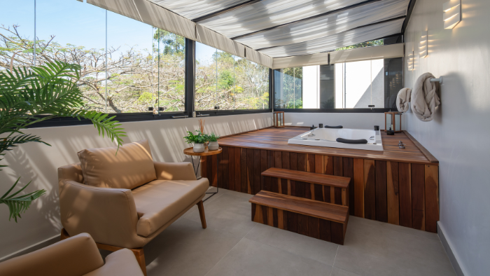 dialogando com o paisagismo e o clima de descanso proposto para todas as áreas