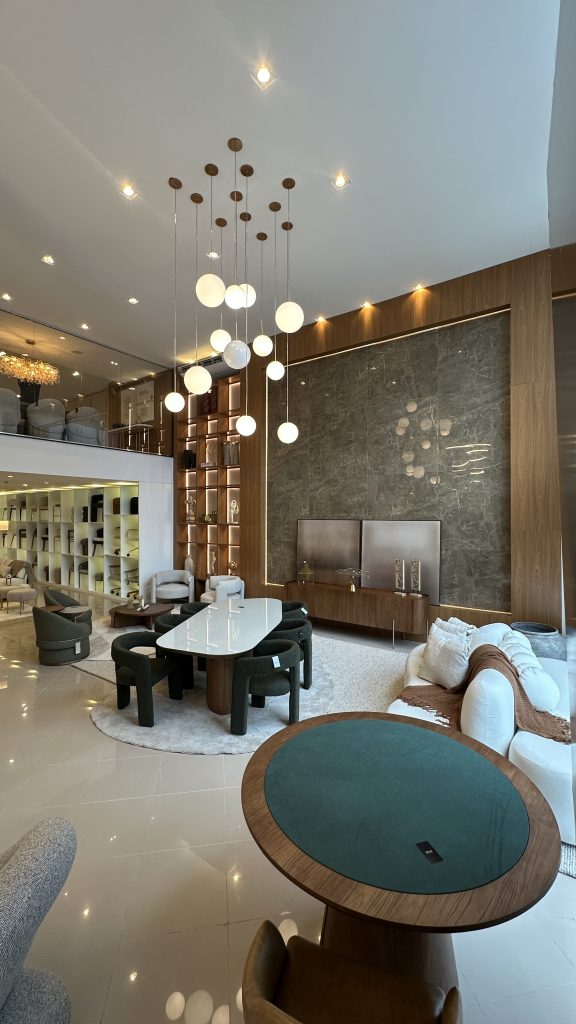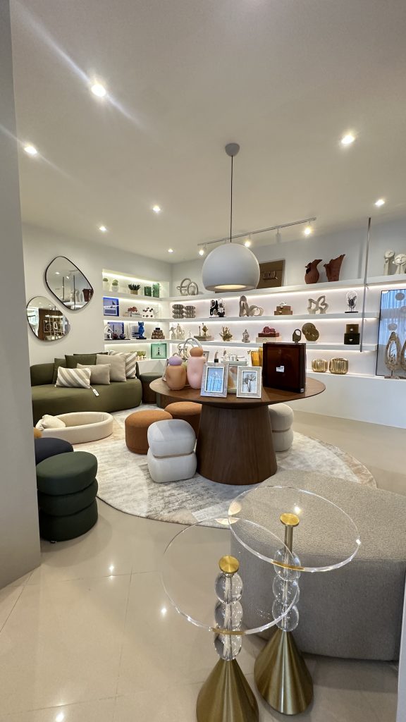 Essa intervenção também permitiu que o mobiliário solto — grande protagonista da D’Casa — ganhasse mais evidência e fluidez na exposição. “A escolha do novo piso colaborou para essa percepção, criando continuidade entre os ambientes e suavizando as transições”, diz Nathalia, que acredita que trabalhar com móveis, muito além de vender, envolve entender o cliente, o espaço, a proposta do projeto e transformar tudo isso em soluções práticas e bonitas. “Foi exatamente isso que aprendi e aprimorei nesses anos: a ouvir, sugerir e ajudar a montar ambientes que realmente fazem sentido”, afirma a arquiteta.