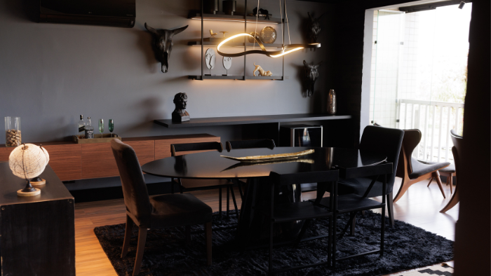 contemporânea e convidativa, equilibrando peças novas com o acervo pessoal trazido pelo cliente