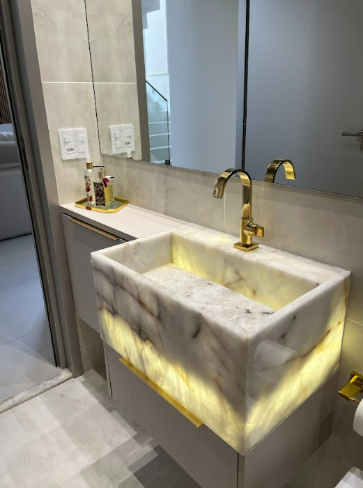 A iluminação foi pensada como parte fundamental da construção da identidade do projeto. A proposta combinou iluminação técnica e decorativa, utilizando: