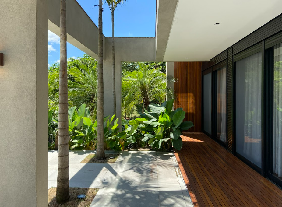 A escolha por espécies tropicais, especialmente brasileiras, reforça a identidade do projeto e contribui para a sensação de acolhimento e pertencimento. O verde, além de emoldurar a arquitetura, traz vida e dinamismo aos espaços.