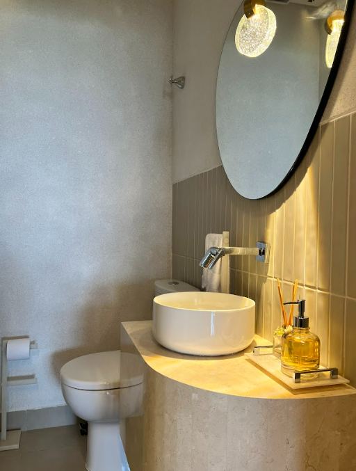 Detalhes do lavabo contribuíram para uma experiência sensorial equilibrada do projeto