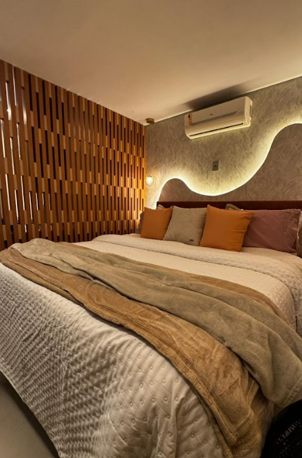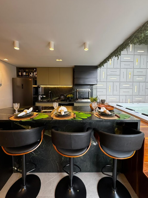 O projeto envolveu uma reforma completa dos ambientes e das áreas comuns do duplex, priorizando integração, conforto e funcionalidade. Cada espaço foi pensado para atender tanto à rotina do casal quanto aos momentos de convivência e celebração, equilibrando design contemporâneo e soluções personalizadas.