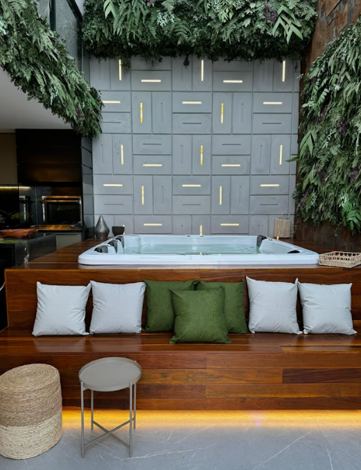 O projeto de paisagismo, desenvolvido em parceria com profissionais indicados pelos clientes, completa a proposta do duplex, reforçando a integração entre interior e exterior e trazendo mais frescor e bem-estar aos espaços.