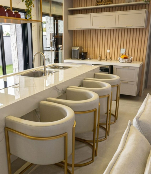 Giovana acompanhou a residência desde a fase de construção até a ambientação final, o que permitiu um olhar cuidadoso e estratégico sobre cada decisão projetual. Esse acompanhamento integral garantiu coerência entre arquitetura, interiores e escolhas de acabamento, resultando em espaços harmônicos e atemporais.